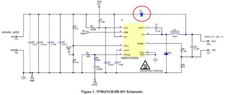 Q: There is D1 on TPS92513EVM circuit. Why is D1 needed?