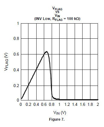 According to the data sheet (Pg.4 Figure 7), there is some kind of voltage ramp expected on Vflag as Vcc increases from 0 to ~0.7V. I suspect this has to do with the Transistor controlling the voltage of this pin.