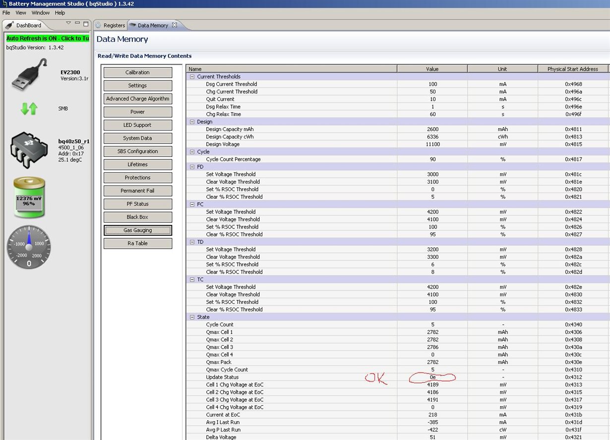 - read flash memory and change setting to enable Gauge, FETs and etc