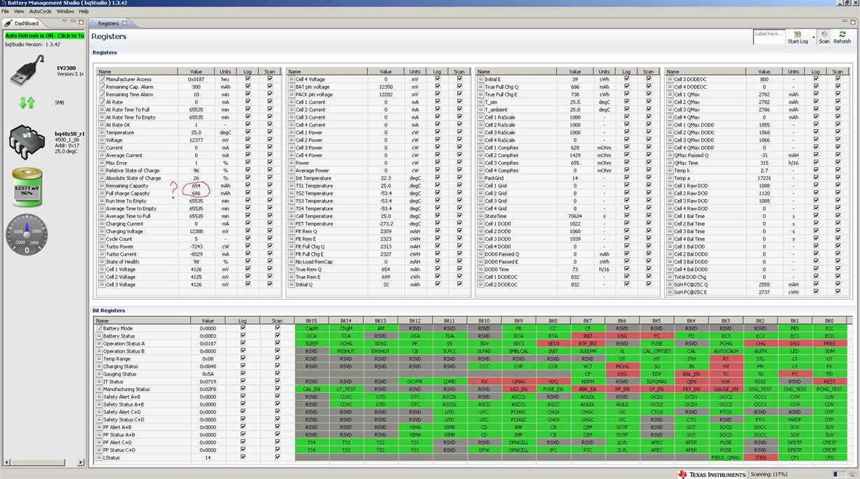 - write original bq40z50r1 srec to bq40z50, reload bqStudio (v1.3.42)