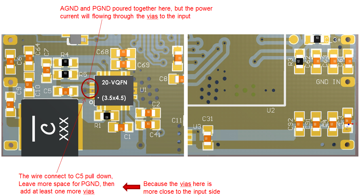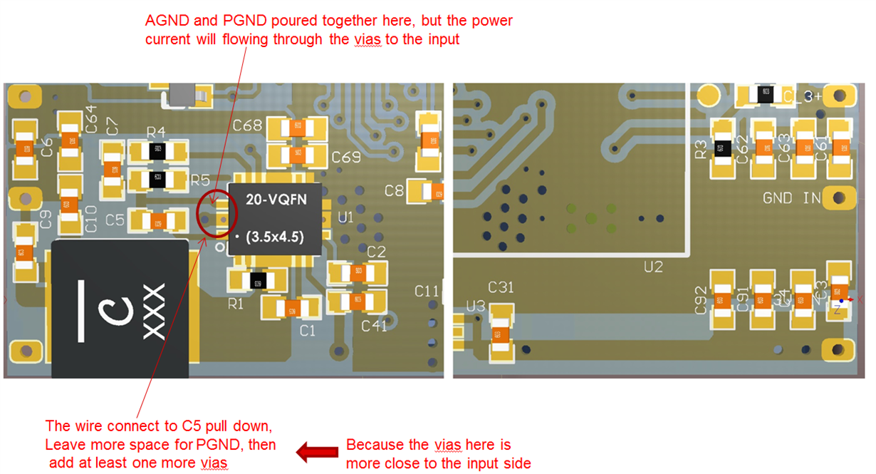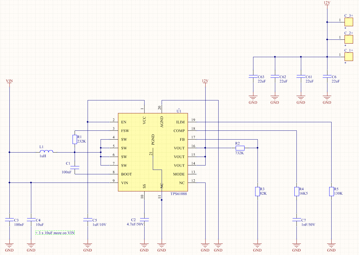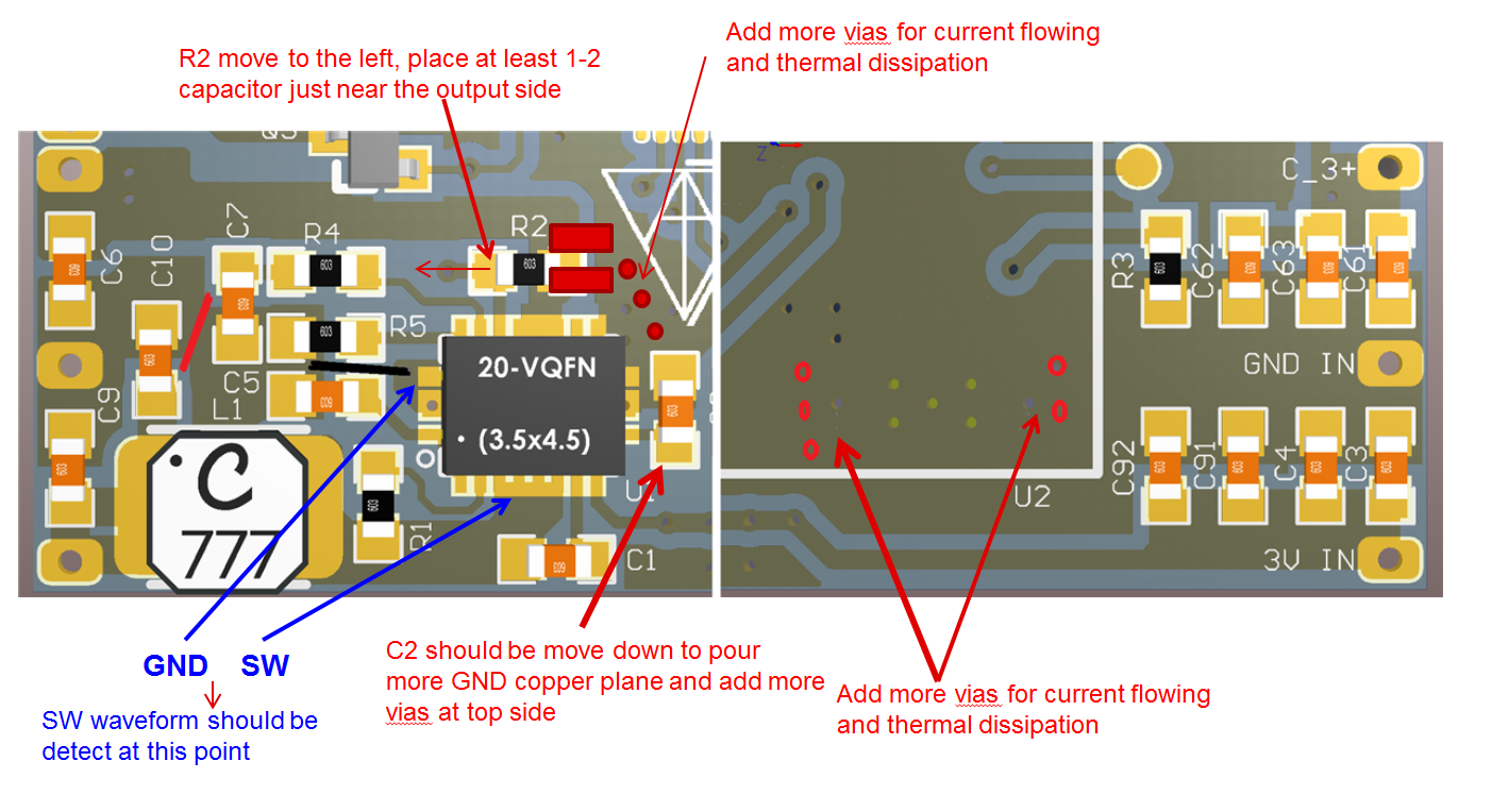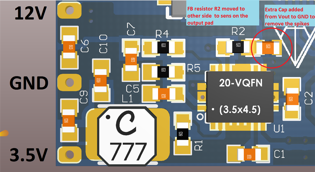 I have the below schematics. I need on output 12V 0.6A, but let say 1A to be on safe. I built it and first tried with XAL4020 1uH. It has the 12V on output, but once increase load it drops, and IC burns. I have bought the developer board and that works fine. Changed the inductor to XAL6030, it increased the loadable current, but still burns some ICs. Changed the inductor with that one from dev. board, seams to be better but still kills the IC at higher loads. Once the IC is damaged than the IC and inductor get hot, and load high current from source, but still try to work.
