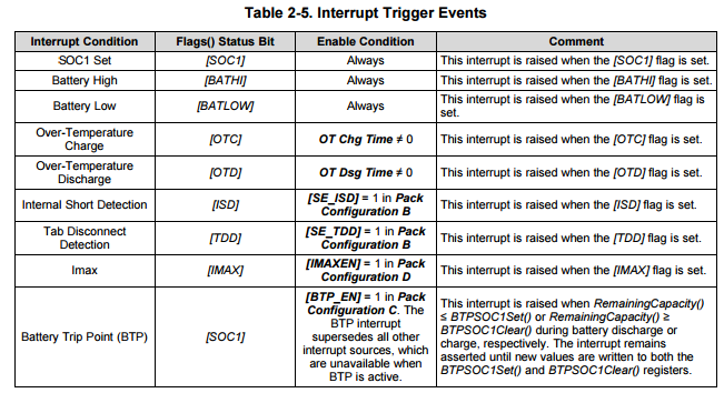 I can toggle registers, I have the actual gas gauging function working properly, etc., I just cannot seem to make the SE pin toggle from SOC1 changing state during discharge.
