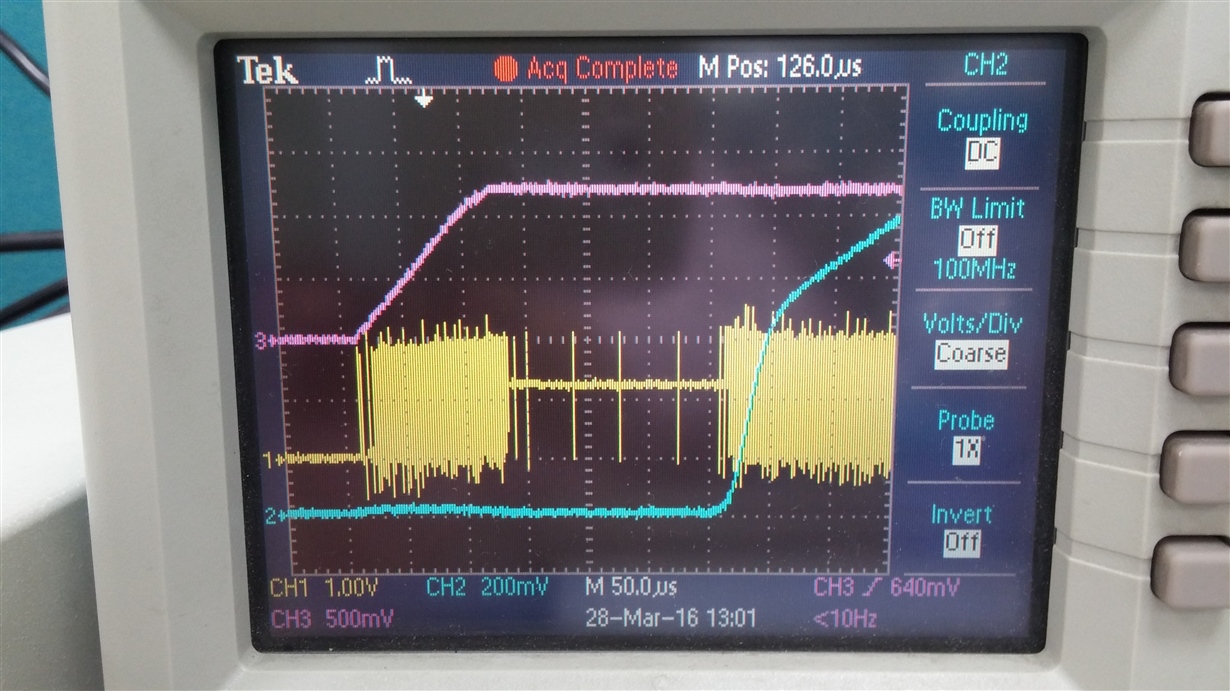 We have test turn on TLV62080 in 5Vin 2.5Vout/1.2A. the out rise waveform is smooth.