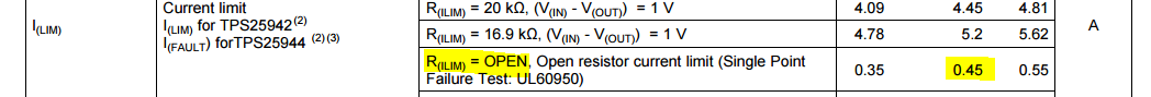 ILIM | Current Limit (Recommended >10% over max load) | 0.3 | A |