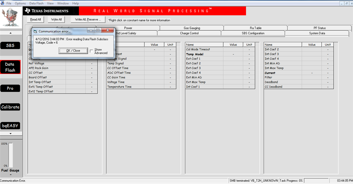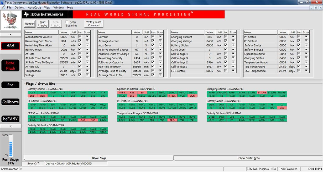 We are working on smart battery (which is based on BQ20z45-R1) & using LTC4100 battery charger & external mcu. Now we are facing problems that battery is not charging or discharging. We had given 3.3V signal from MCU to PRES pin (pin no 12) of BQ20Z45 & noticed that absolute max. vtg rate of PRES pin is 2.8V.