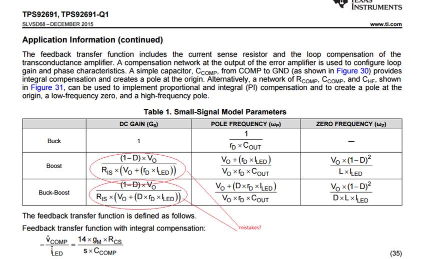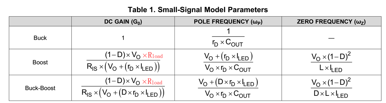 Our customer is evaluating TPS92691 for LED lighting projects. They have some questions about the small signal mode parameters calculation. Shown as below: