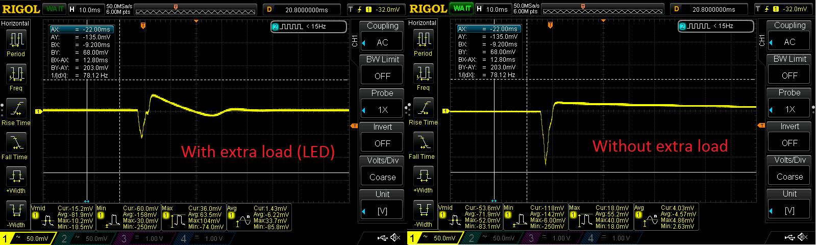 If i put some extra load on the output of the regulator it works ok. There are some grpahs of the output voltage of the regulator: