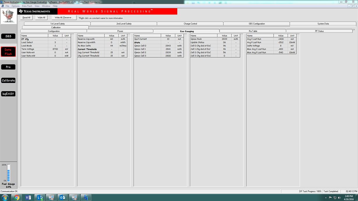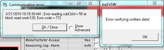We are encountering a discrepancy (while reading consecutive batteries), where the software seems to want to write information from the previous pack installed via the bqEVSW into the currently installed battery, specifically data in the “Data Flash” side tab, under the “System Data” field,: Manuf. Info 0, and Manuf. Block 4. This is after ONLY “Read all” is selected.
