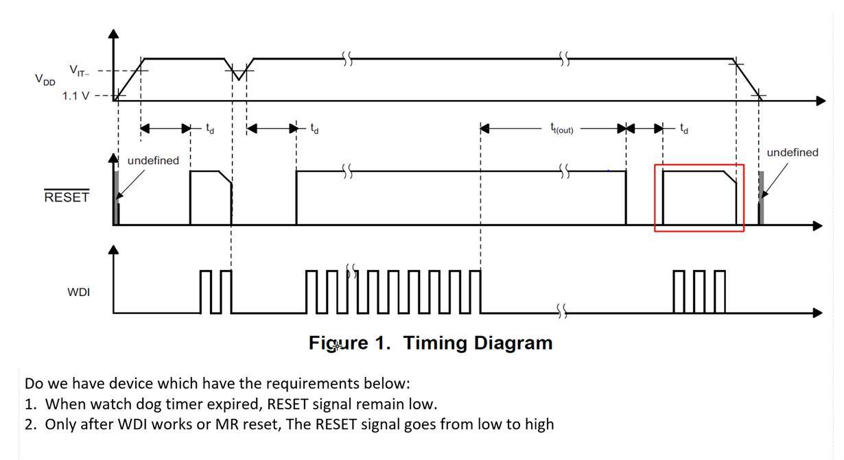 This is an interesting application, could you help explain the desire for keeping /RESET low until WDI transitions?