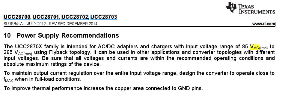 But, UCC28700,UCC2970X,UCC28722 have no HV PIN. They have only Vdd PIN with a Vmax rating of 35 V. So, the statement about Vac min of 85 V is not conving for these controllers.