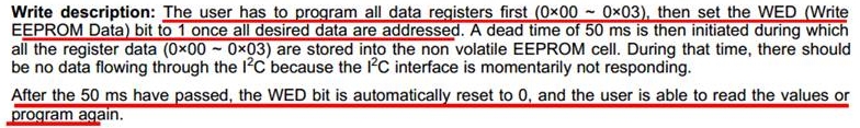 Could you please help to provide program example code for write data to 0x00~0x03 and WED bit (0xff??)?