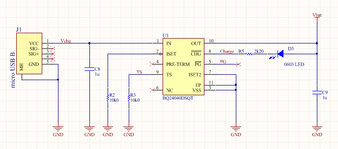 I have designed a BQ24040 charger into our board design. The circuit is this: