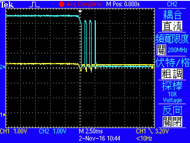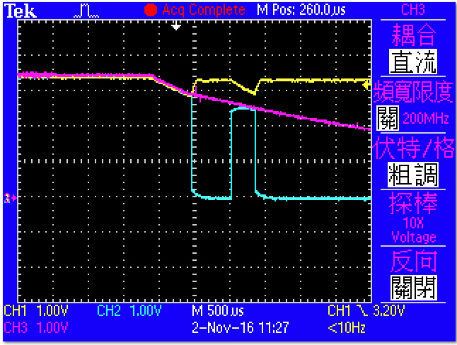 But after 500us, PG voltage occur pluse effect system voltage drop. (show FIG1.)
