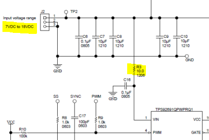 I have a customer who's designing with our TPS92691 LED Driver. The supply goes from 12V to 60V. The datasheet recommends "to bypass the VIN pin with a 0.1-µF ceramic capacitor placed as close as possible to the device and add a series 10-Ω resistor..."