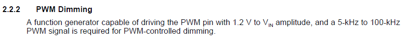 However, I found “A function generator capable of driving the PWM pin with 1.2 V to VIN amplitude” in the TPS61169EVM user’s guide.