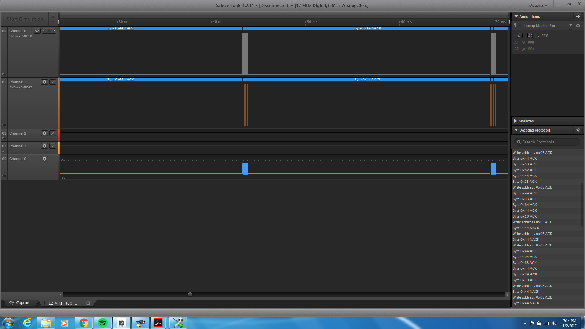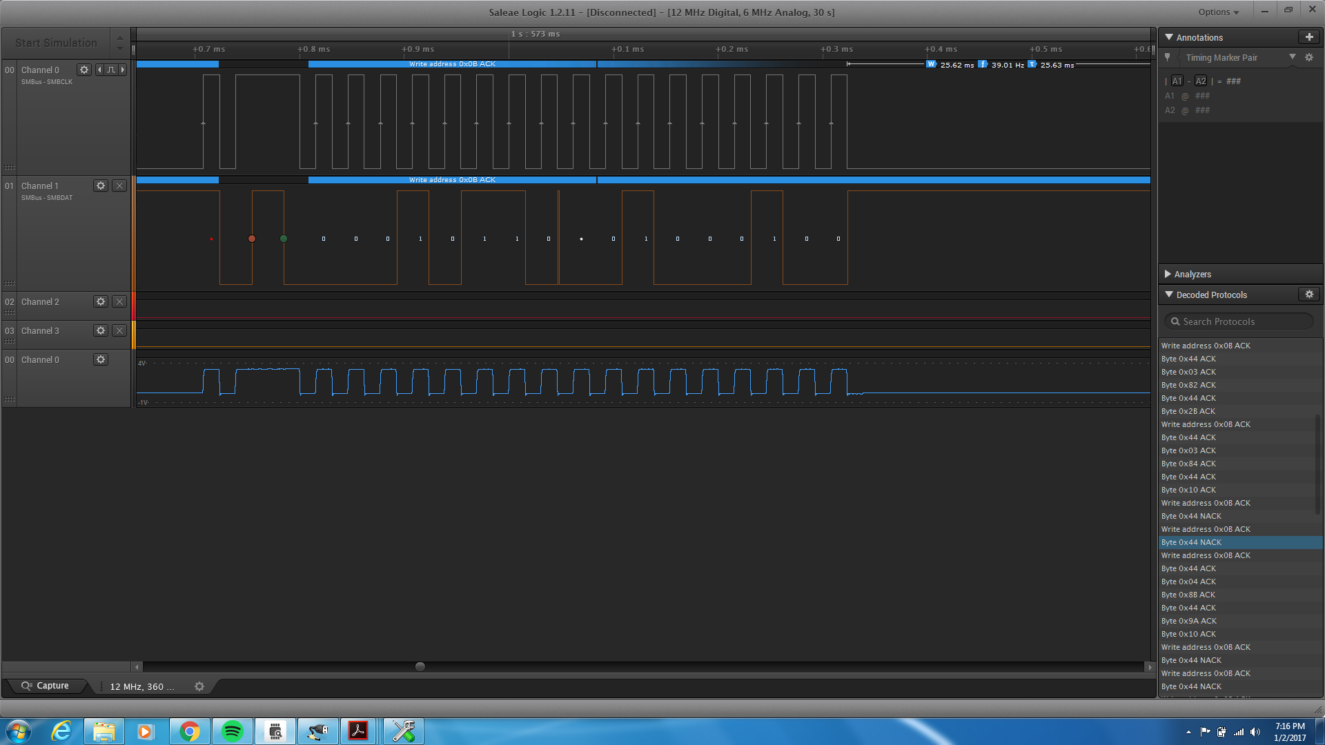 This is what I have so far, but I can't figure out what is or isn't happening correctly. I have here attached code, examples, and the Logic Analyzer.