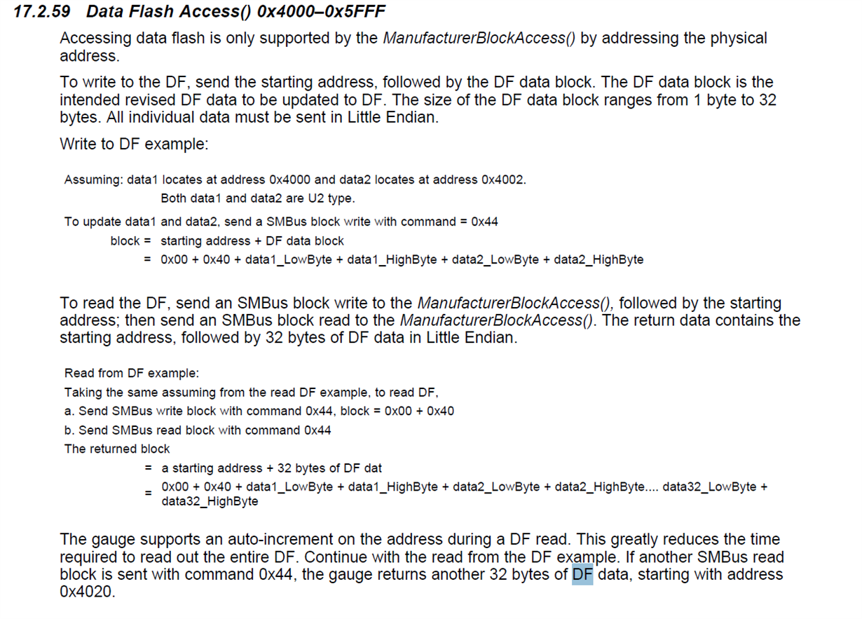 The example DF Write and Read from the Fuel Gauge Technical: