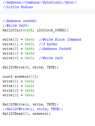 I am attempting to write to the address 0x4466 the value 0x00 then read that value back.
