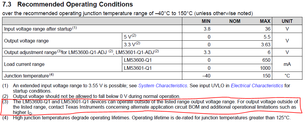 Hi, Our customer consider to use LM53600-Q1. Output voltage is 3.1V. Their condition is outside of the listed range.