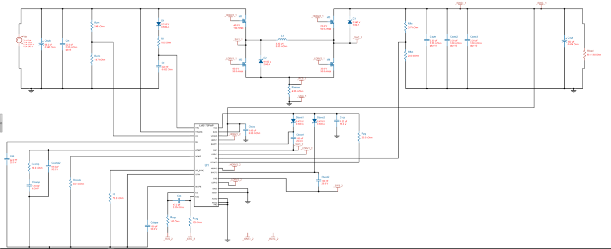 So lately I have been working on a 150W SMPS. It uses the texas instruments LM5175 Buck/boost controller. I used their reference design as a template for my own and I have attached screen caps of both the reference design and my design.