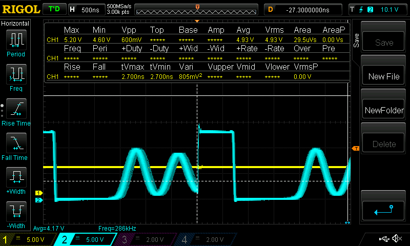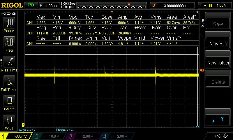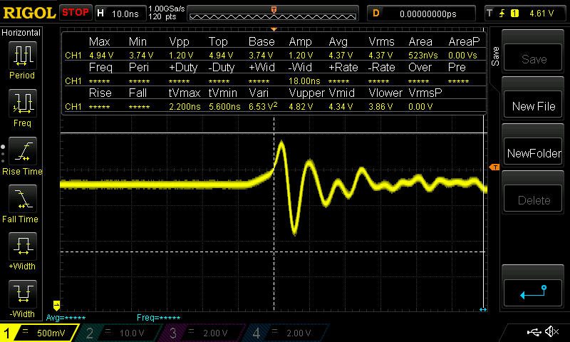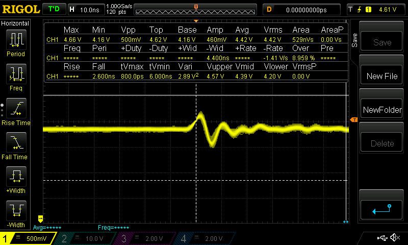 The voltage at the output is accurate but fall with more than 100mA. I've seen the signal (suposely square) at fet input has some damping (maybe bad layout) and with 1M resistor to ground there seems to hold more current at the output, but not too much.