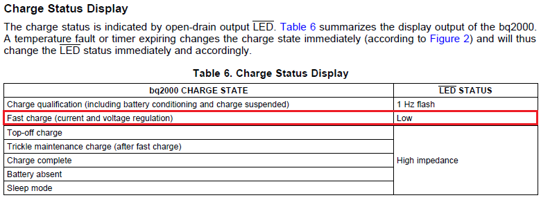 Which is early "#LED shows Low" or "Fast charge starts" in this case?