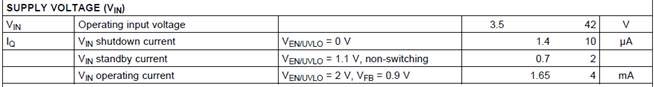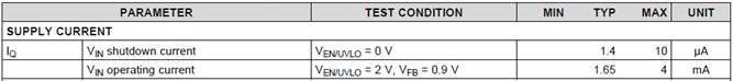 IQ(VIN shutdown current) : MAX10 μA (VEN/UVLO = 0 V)