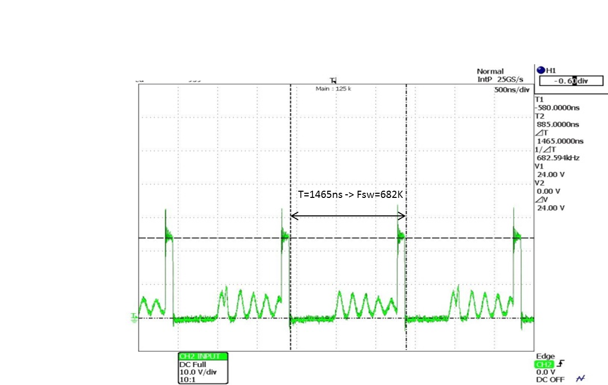 The datasheet example in figure 25 seems to have 500KHz switching freq approximately.