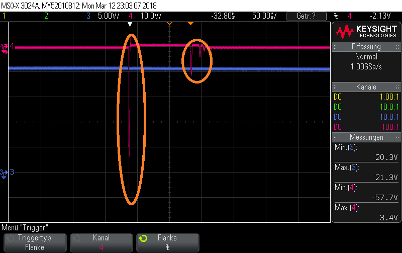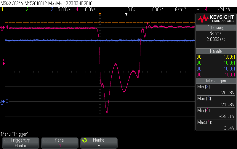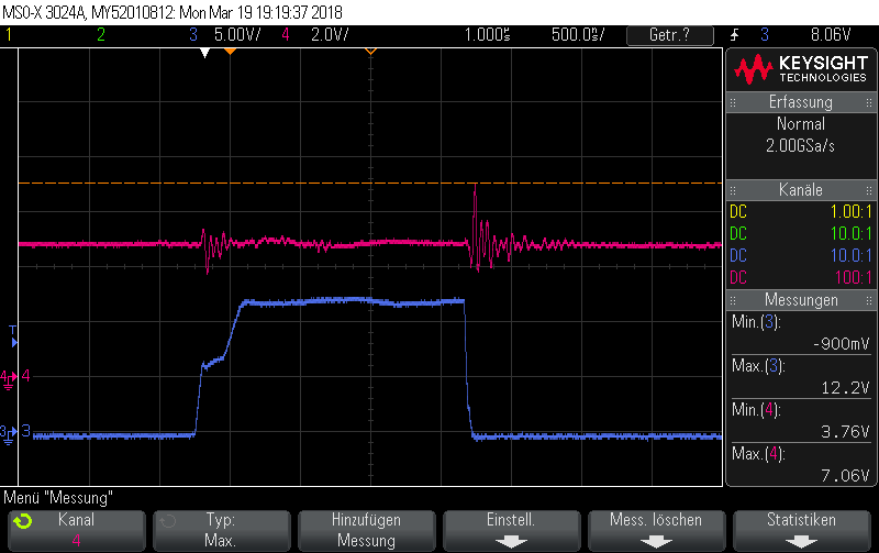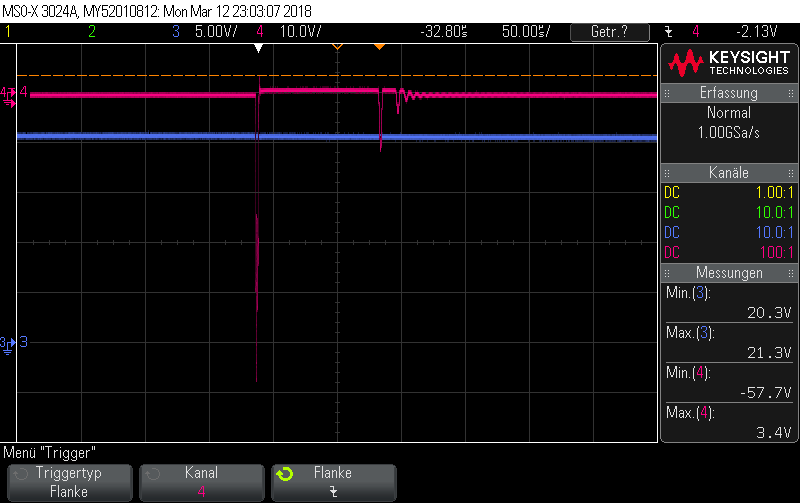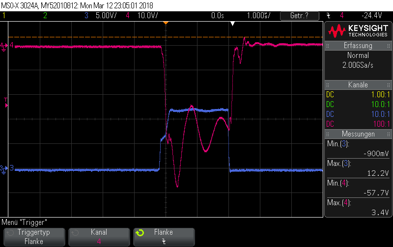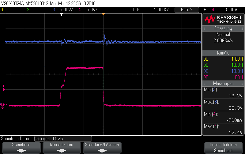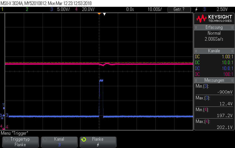 - checked the High-voltage input, which is pretty flat even during the MOSFET gate pulse
