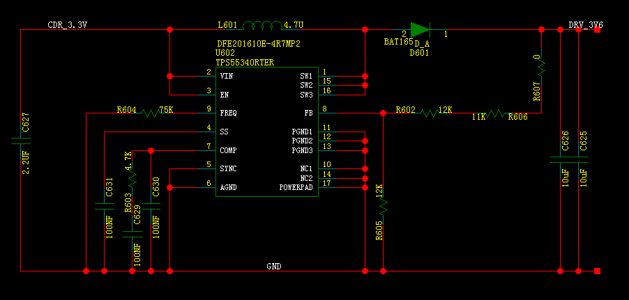 The compensation network need to be changed. suggest to change Rcomp=R603=200 hom. Ccomp=C629=100nF, C630=220pF.
