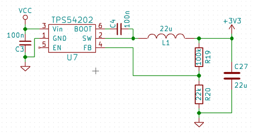 I have used a TPS54202 in a design with a low power microcontroller which needs to go in low power shutdown (<100uA) to preserve battery life. However, I have build up the PCB with only the DCDC circuit and measured the 3V3 like expected but the input current without any load is ~180uA. This is 4 times the quiescent current specified in the datasheet (45uA). What can be causing this? Do I need a different converter?