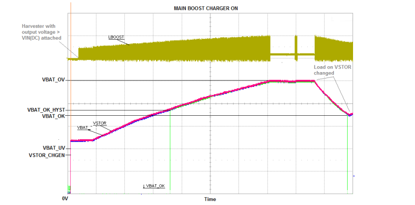 I am not sure you can put it down to changing cap and inductor values, why would VSTOR drop to 2.28 and recover back 4.2 if the caps / inductor were at fault why would it recover?