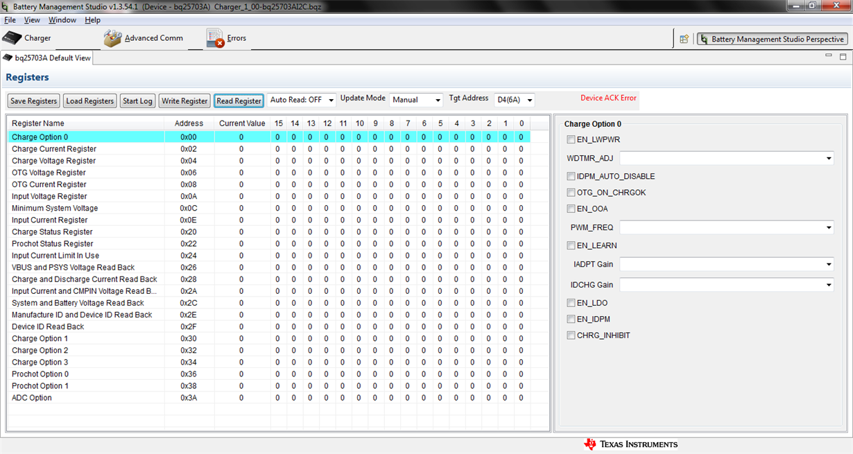 I am not able to see the recommended target mentioned in BQ25703A EVM i.e., “Charger_1_00-bq25703AI2C.bqz” in the list of supported targets by tool.