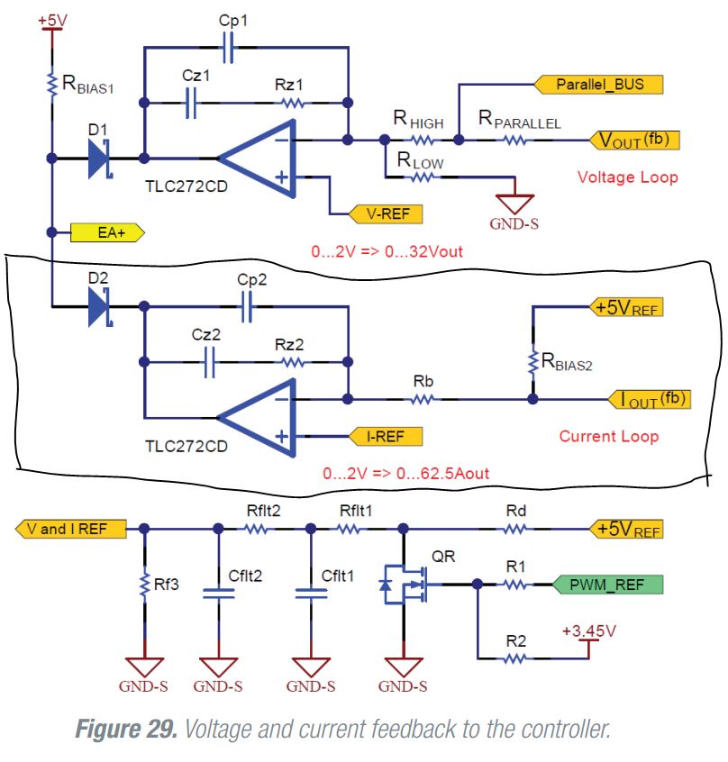 1)I am clear about fig 29 . voltage and current feedback to the controller, but please explain, in PMP8740 why this Iout signal used here in this voltage loop?