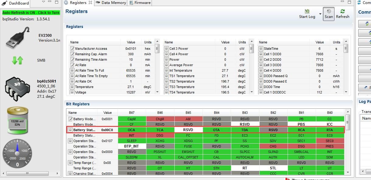 Reading the register through BQ Studio finds that there are two RSVD flags set, resulting in the power board can not be charged.