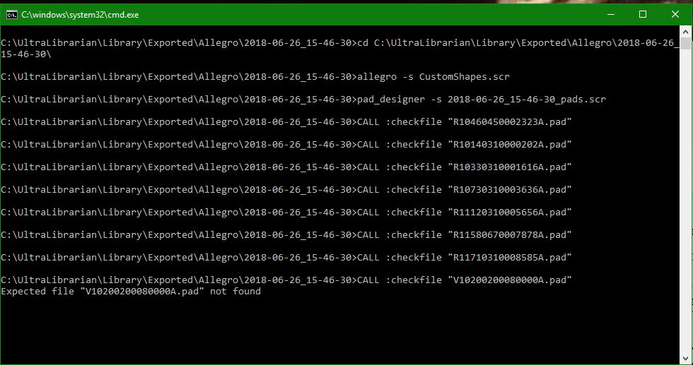 The LMZM33603_RLR_18.bxl will load into UltraLibrarian Free Reader (8.1.263), and it looks ok in the pattern viewer. However, when I try to export it to Cadence Allegro 16.6, using Allegro PCB designer, on one of the pad stacks Allegro stops with a warning about the drill size being the same as the smallest pad size. Closing the pad stack editing window allows the script to continue, but it fails immediately after that with an error about a missing pad file.