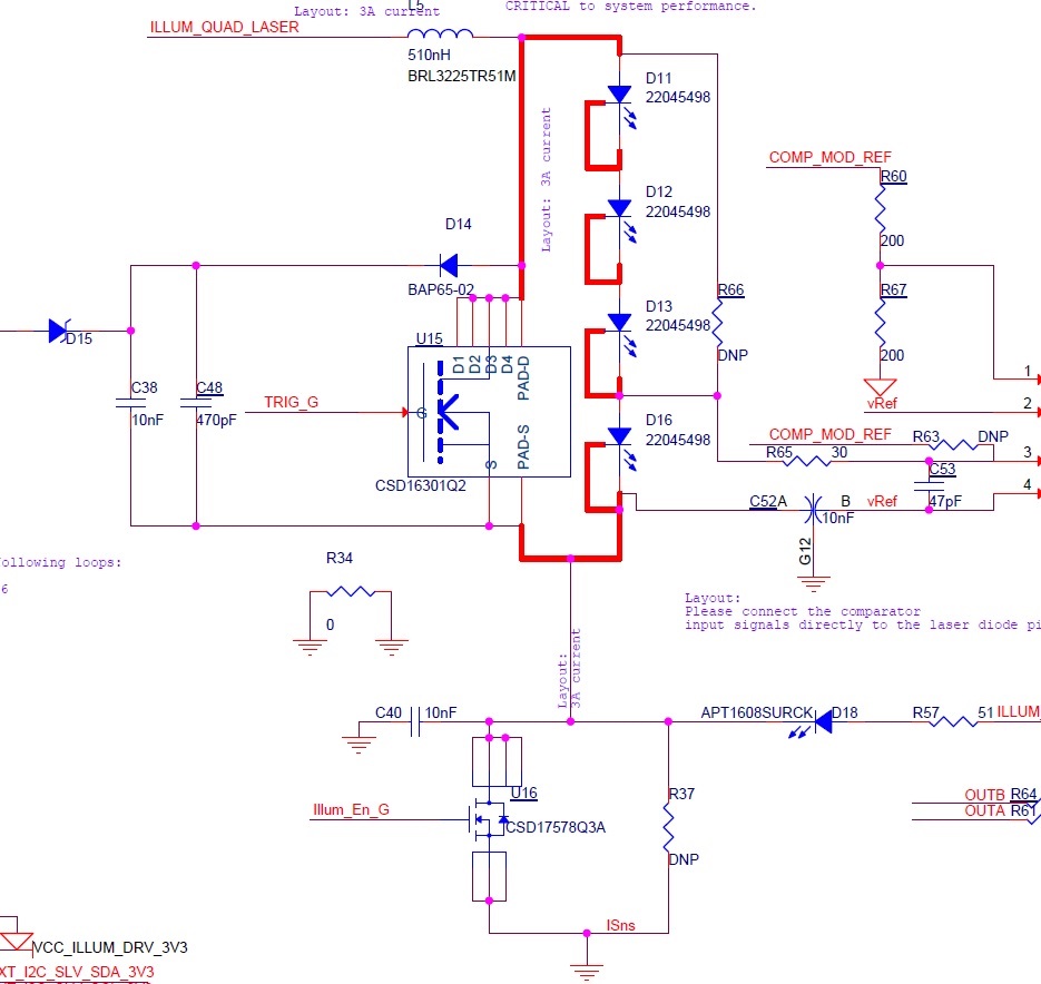 I am studying TOF circuit. In "OPT8241-CDK-EVM IB 10-50", I don't know U15/U16 working condition.