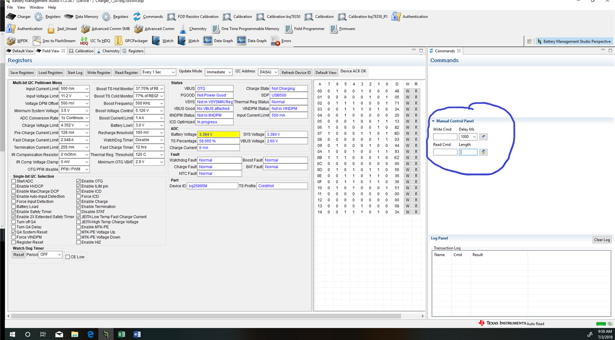 Task: reading battery voltage and system voltage and set watchdog timer to disable.