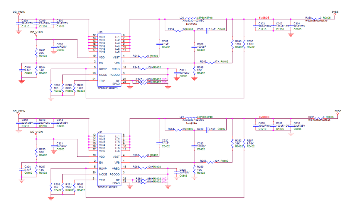 Sir, we have used TPS53319 to create 5V and 3.3V power.Now our problem is that TPS53319 can't start up at all PCBA boards. The“EN”,"VREG" have rised, but the output voltage is only 0.6V(3.3V and 5V circuit).please help to analysize.