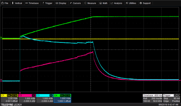 2. The duty cycle will be significantly below 20% until the capacitor voltage ramps up to ~0.8V -> M(D) = 0.2. If the voltage on the supercap is 50mV, M(D) = 1/80 D ~ 1.25%. Assuming a constant current of 400mA, it will take ~2s to charge the supercap to 0.8V, and during this time the duty cycle must be less than the minimum specified in the datasheet.