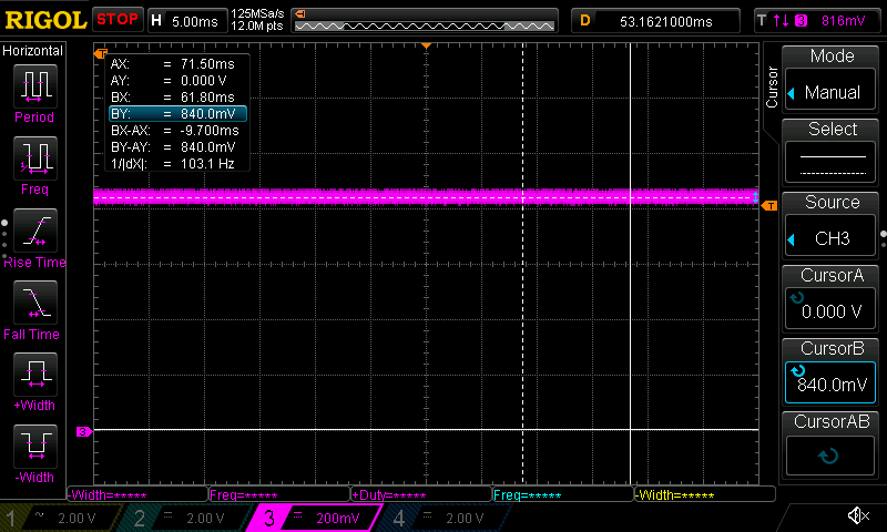 The required value of switching frequency was reached with Ron=300 kOhm.