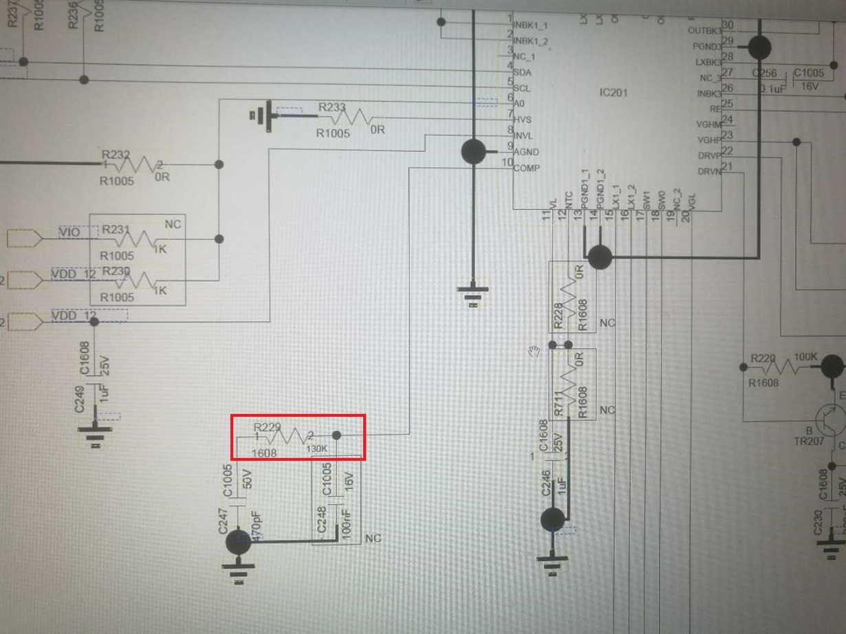 2. The circuit that appears to be flickering is different in classic design. The R229 is 130 ohms and the recommended to be 75 ohms. If we use 200 ohms, the screen flashes earlier, the frequency rate is higher, and the probability is higher.
