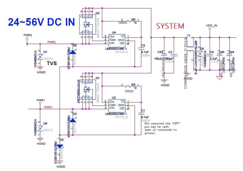 follow below pic circuit, PWR2 provide DC 24V and PWR1 is open, then U4 LM5050-1 turn on MOSFET and offer DC24V for Systme ,But we detect DC1.2V in PWR1 net , please help Explanation it, thanks !