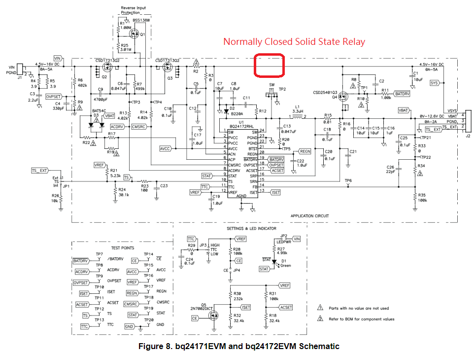 The load of the system is at max. 22A. The load can be switch on or off by the host MCU. Obviously the power adapter is not able to supply the power for the load. Therefore I would like to prevent the load drawing power from the adapter, the load should only draw power from the battery. Therefore I added a normally closed solid state relay between the "Vsys" and input power adapter (please refer to the attached picture). As such, whenever the MCU need to switch on the load, it will switch off the relay first. Is this method correct?