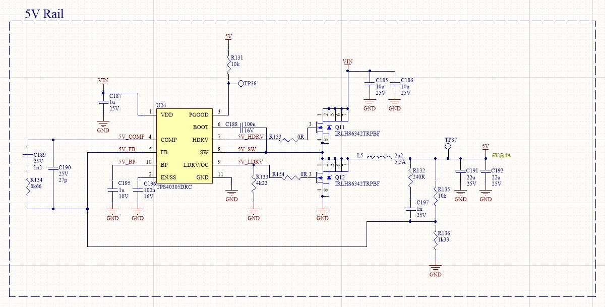 We have the following circuit on several boards and we have heating issues coming from the TPS40305.