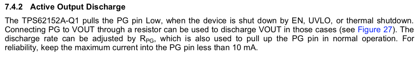 Greetings, I'm considering to use TPS62152 or TPS62152-Q1 discharge function on the VOUT, but the description in the datasheet confuses me.