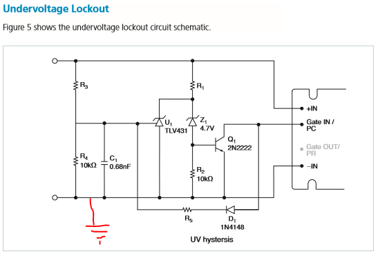 We use the TLV431 in the undervoltage scheme as advised on an application note. The only difference is our 0V is connected to earth.