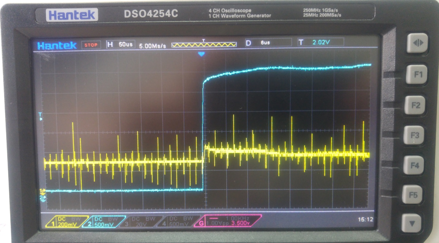 Load on VDD_SBP about 12mA and capacitance 500nF and after resistor 100Ω additional 3.3uF