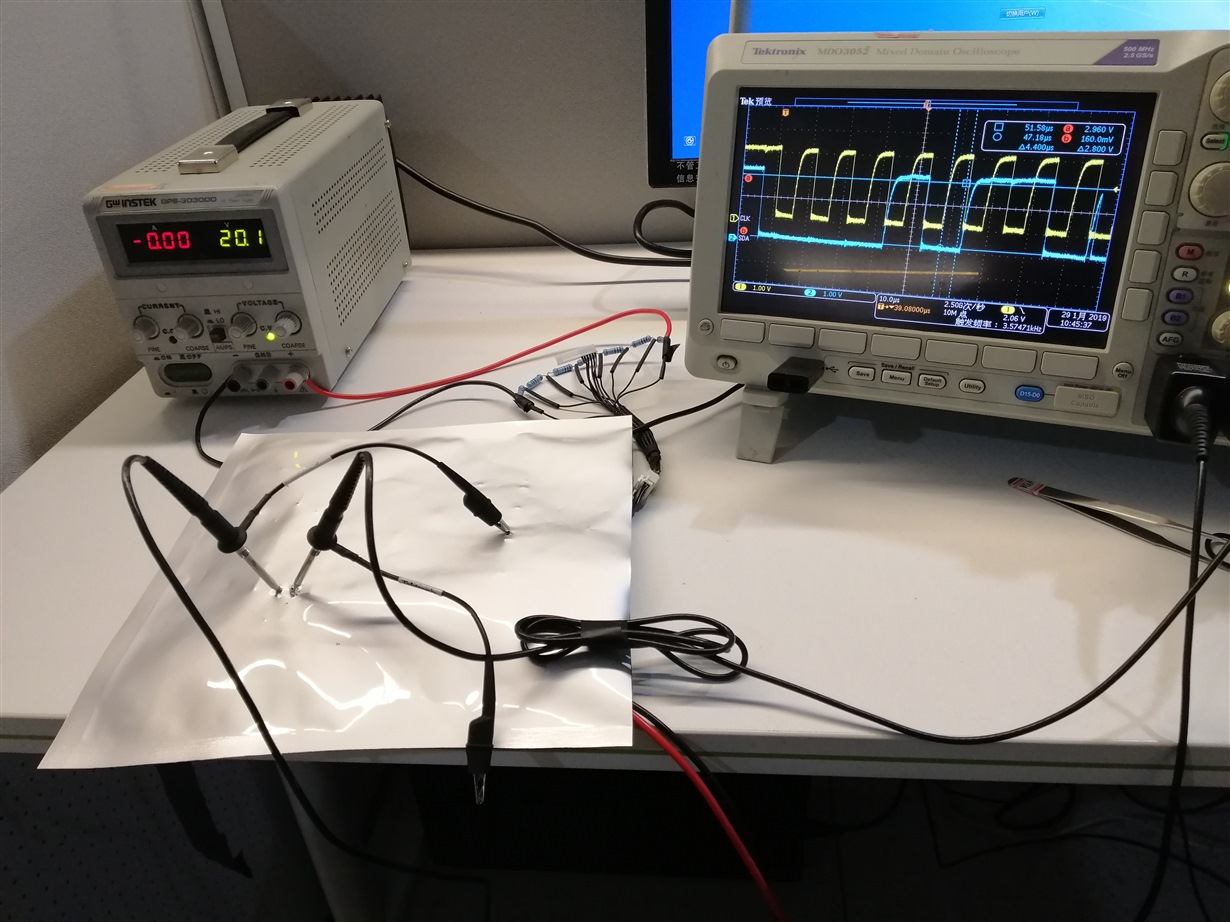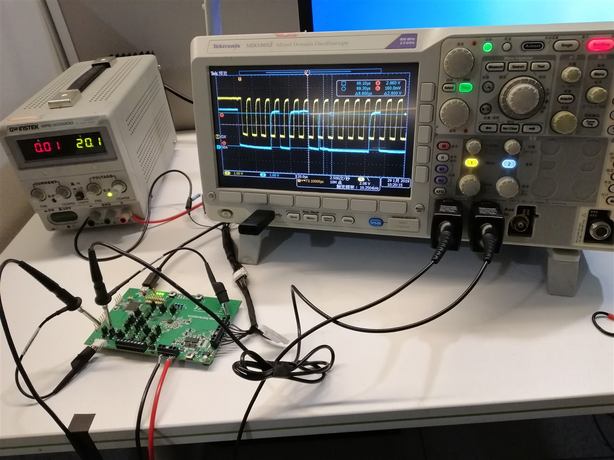 Yes,i using the bq40z80 evm,the test testing environment as follows,i don't think the pulse caused by EMI source.It just a power source nearby,according to your suggestion, i measure the waveform on the SDA lines again, the waveform same as before.Do you have the bq40z80 EVM?Measure the BQ40Z80EVM-020 SMBus waveform and show us the waveform if you can.Tahnks for you support.