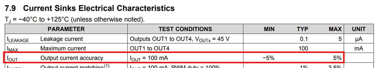 Current accuracy is specified ±5% as below.